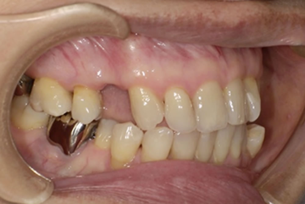 こちらの方は、当院が運営する「入れ歯相談サイト」をご覧になり、無料相談を通じて来院されました。右上の欠損部分をどの治療法で補うべきか検討されており、インプラント・ブリッジ・入れ歯の3種類の治療法について、それぞれの特徴やメリット・デメリットを知りたいというご希望がありました。